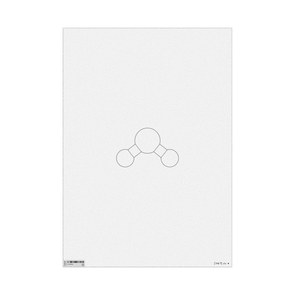 A poster featuring the ball-and-stick model (stylized) of the water molecule.