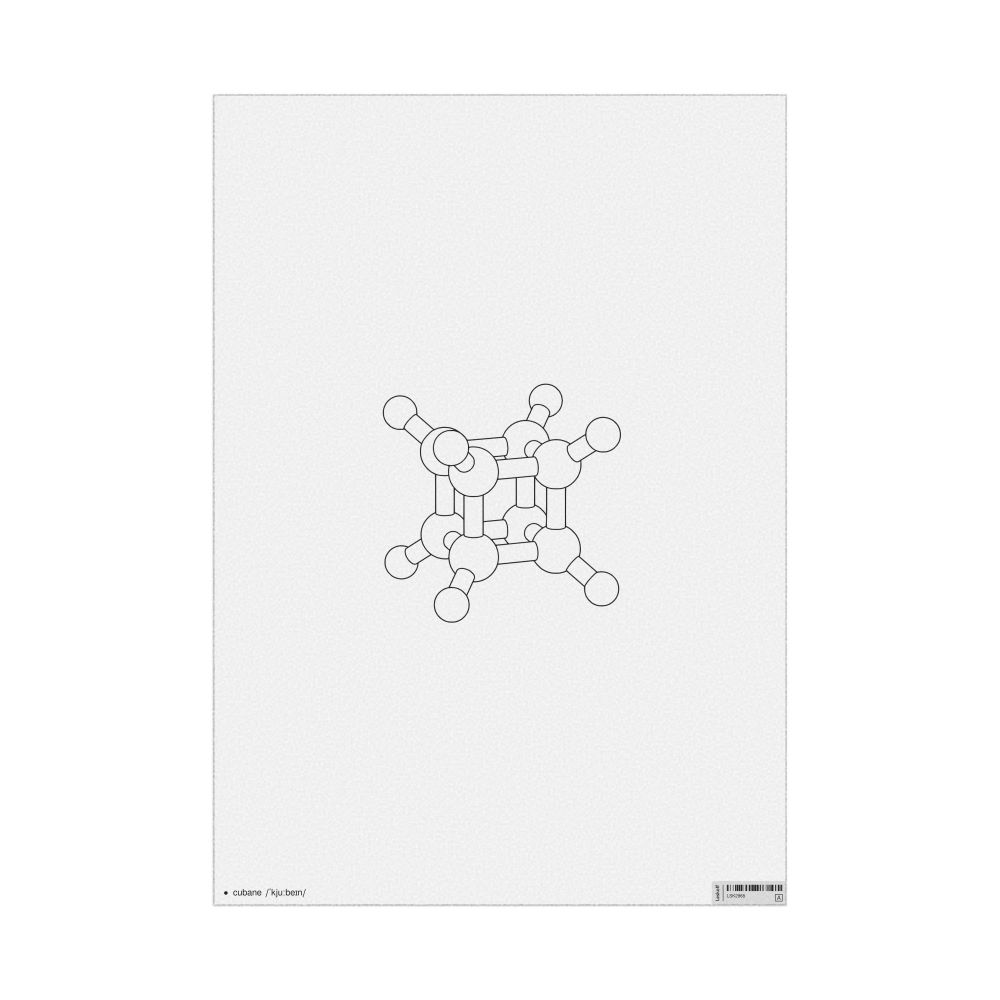 A poster featuring the ball-and-stick model (stylized) of the cubane molecule.