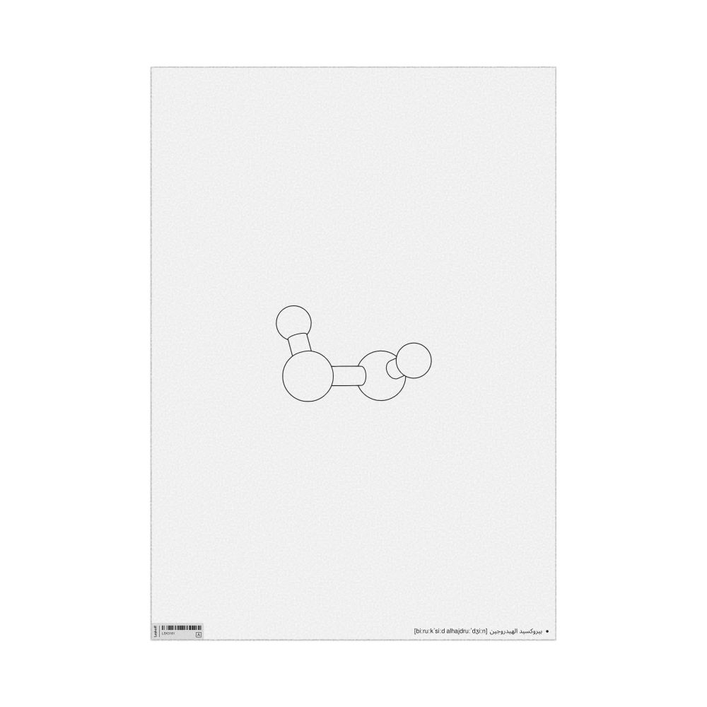 A poster featuring the ball-and-stick model (stylized) of the hydrogen peroxide molecule.