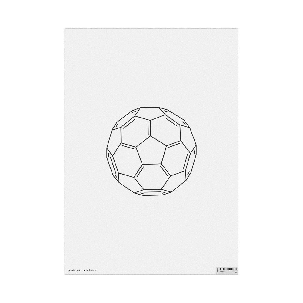 Fullerene Molecule Poster2D Structure, Greek/English-Labeled