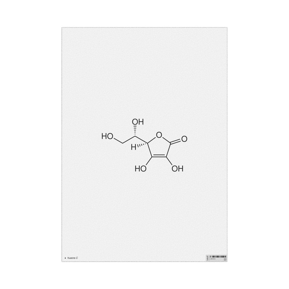 A poster featuring the 2D structure of the vitamin C molecule in Māori (huaora C).