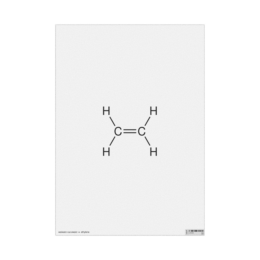 A poster featuring the 2D structure of the ethylene molecule in Māori (waiwaro rua ewaro) with English translations.