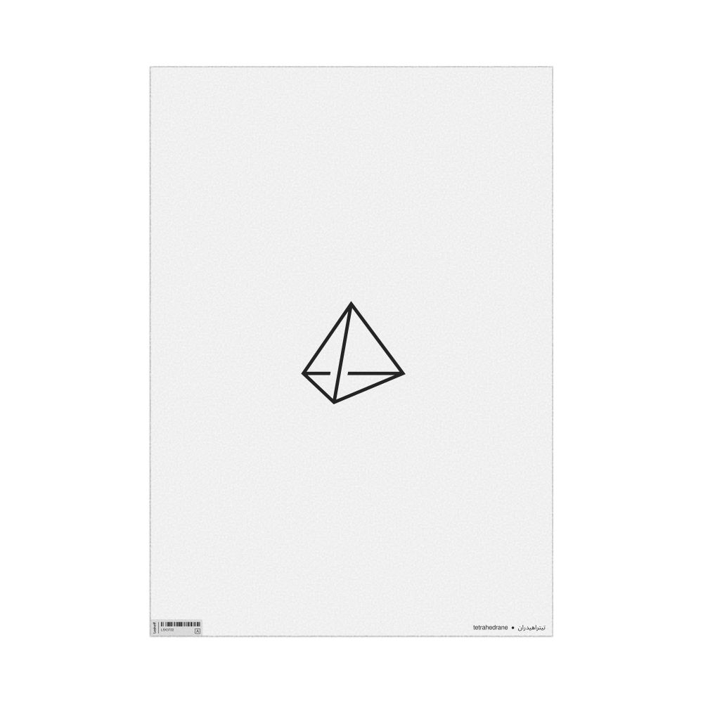 A poster featuring the 2D structure of the tetrahedrane molecule in Arabic (تيتراهيدران) with English translations.