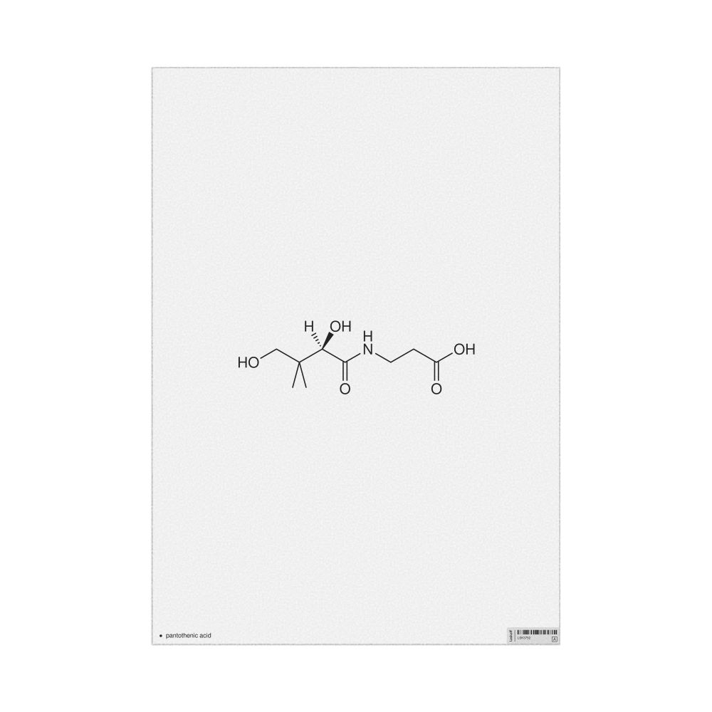 A poster featuring the 2D structure of the pantothenic acid molecule.