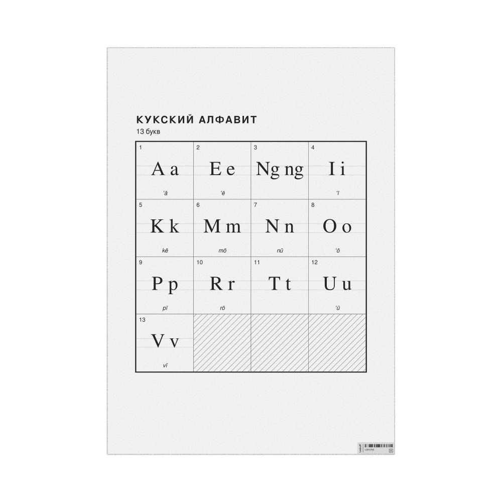 The Cook Islands Māori alphabet chart (the full set of letters) labeled in Russian (Кукский алфавит) in the 23.4 x 33.1 in (59.4 x 84.1 cm, poster / wall chart) format.