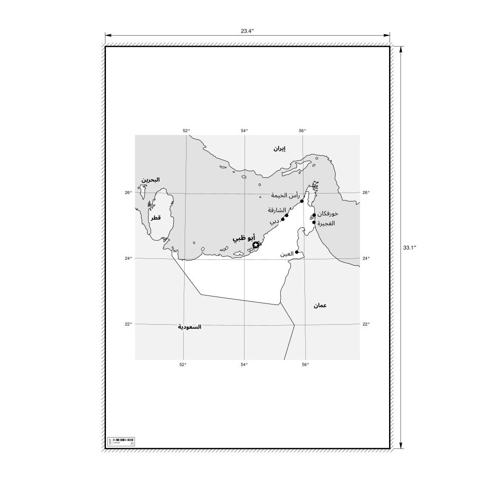 A poster featuring the map of the United Arab Emirates in Arabic (الإمارات).