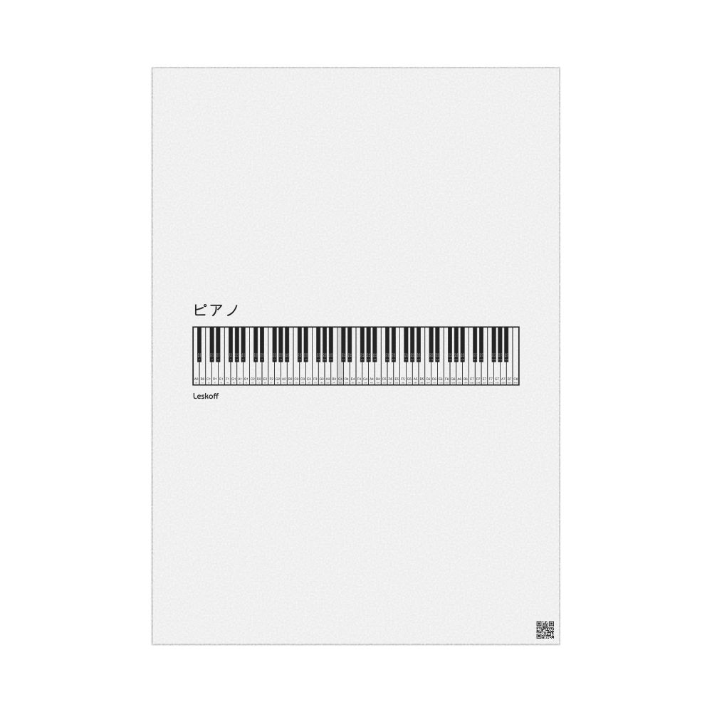 A poster featuring a piano keyboard (piano roll) in Japanese (ピアノ).