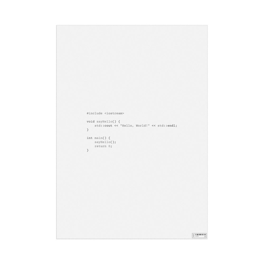A poster featuring the "Hello, World!" program in the C++ programming language.