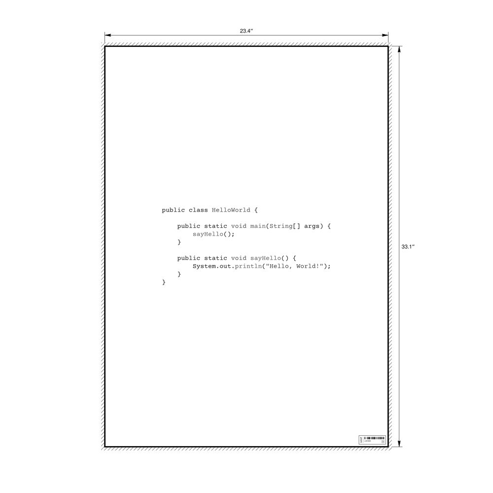 A poster featuring the "Hello, World!" program in the Java programming language.