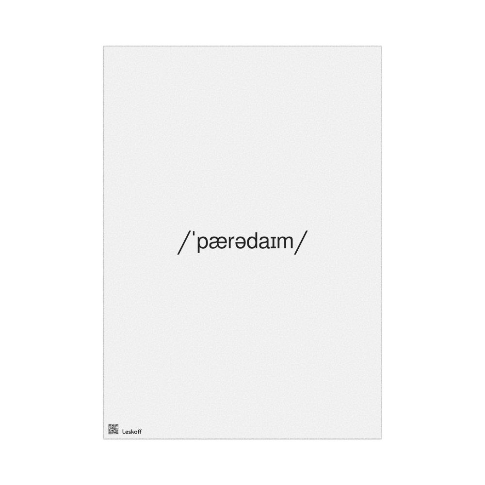 A poster featuring the phonetic transcription of "paradigm" in the International Phonetic Alphabet (IPA).