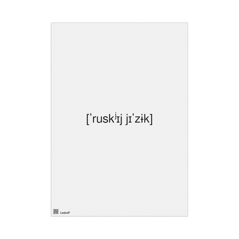 A poster featuring the phonetic transcription of "русский язык" in the International Phonetic Alphabet (IPA).