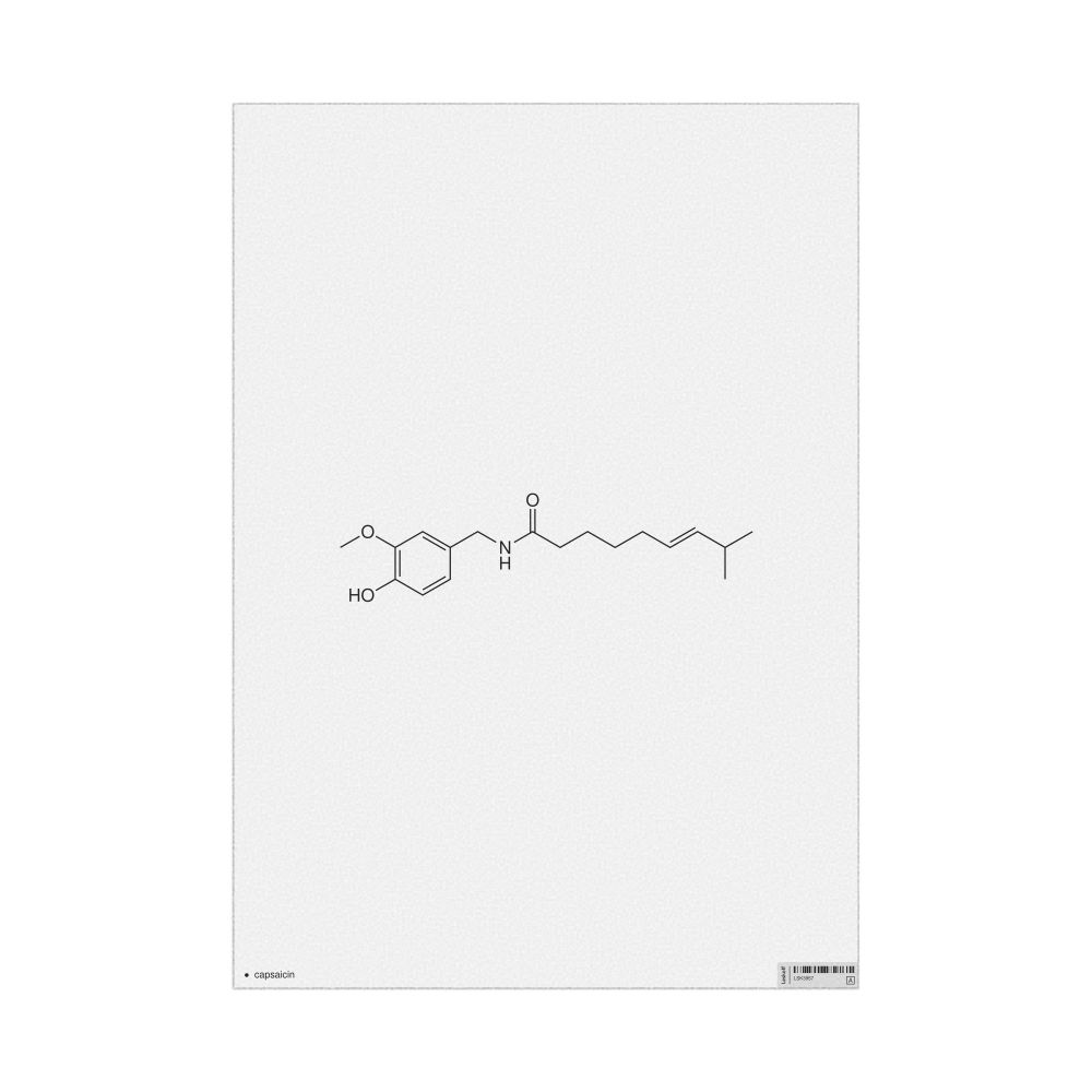 A poster featuring the 2D structure of the capsaicin molecule.