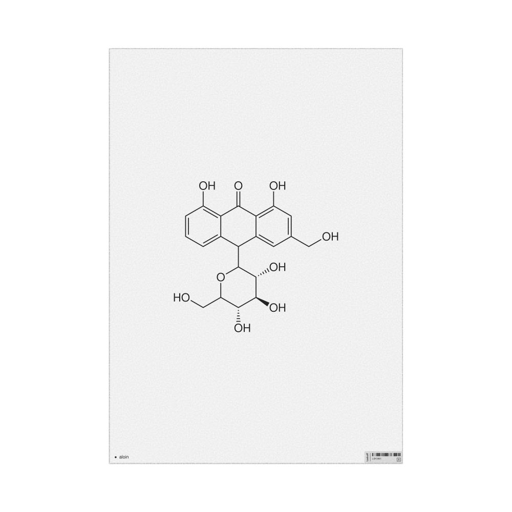 A poster featuring the 2D structure of the aloin molecule.