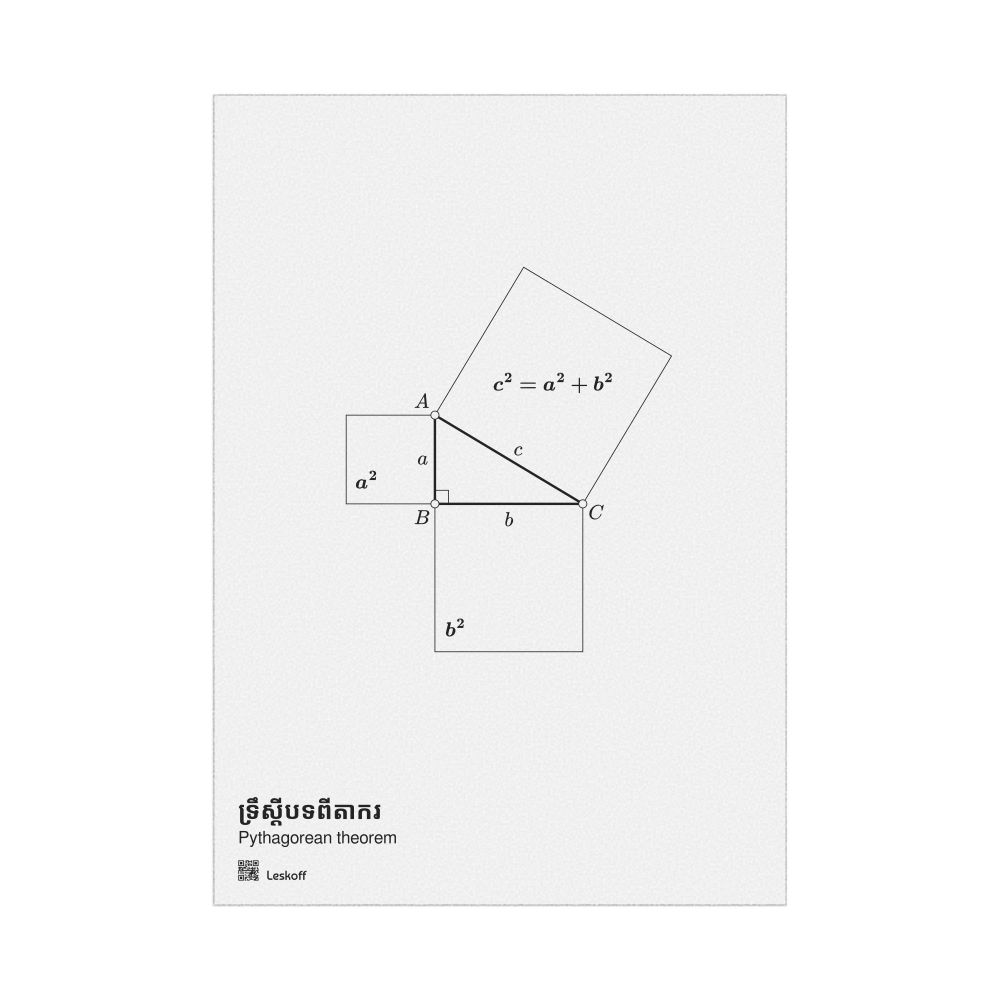 A poster of the Pythagorean theorem in Khmer (ទ្រឹស្តីបទពីតាករ) with English translations.