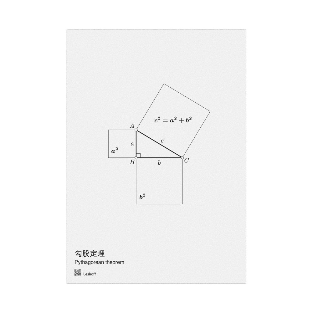 A poster of the Pythagorean theorem in Chinese (勾股定理) with English translations.