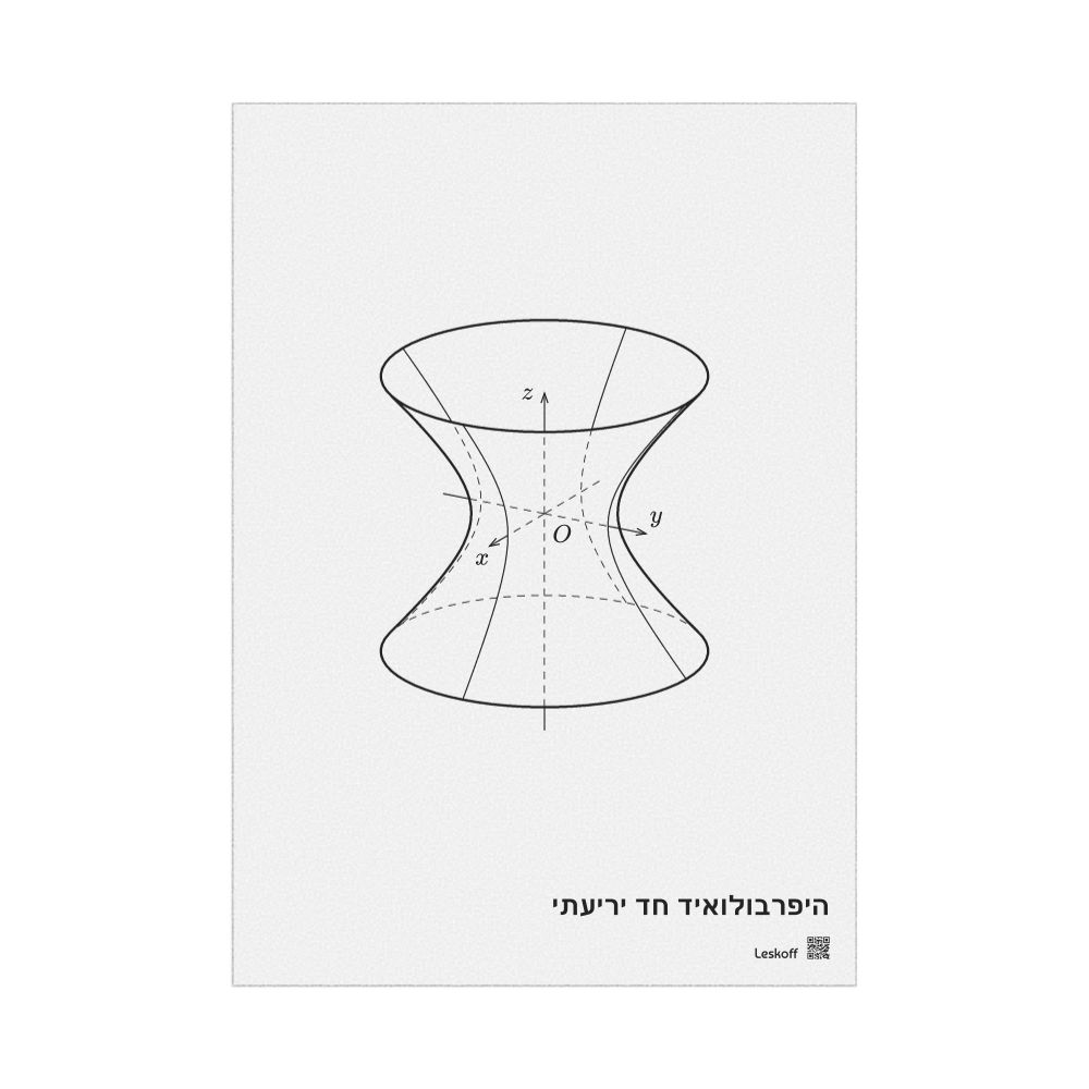 A poster featuring a hyperboloid of one sheet in Hebrew (היפרבולואיד חד יריעתי).