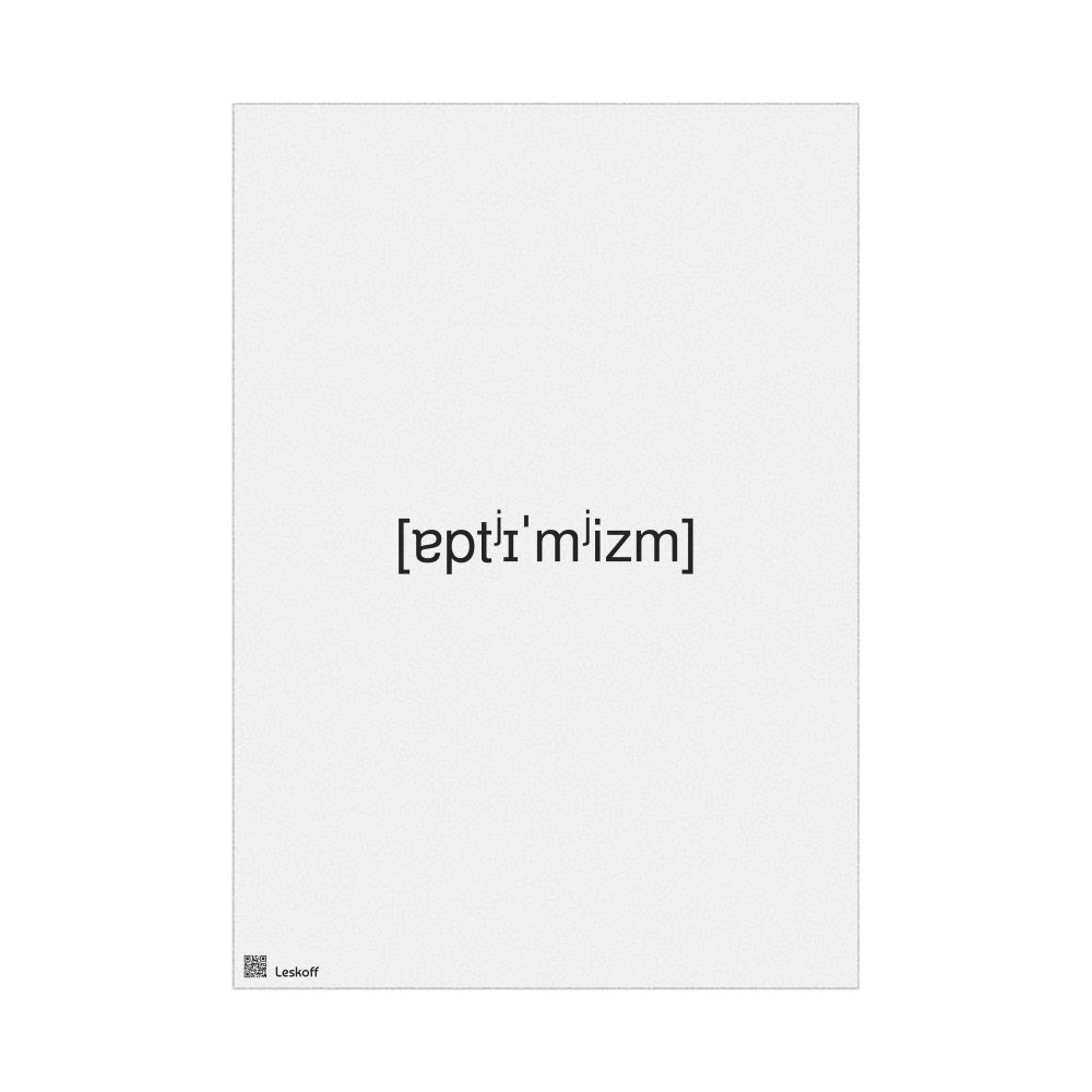 A poster featuring the phonetic transcription of оптимизм in the International Phonetic Alphabet (IPA).