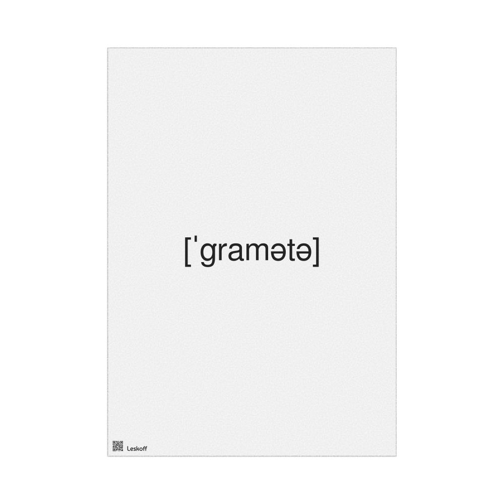 A poster featuring the phonetic transcription of грамота in the International Phonetic Alphabet (IPA).