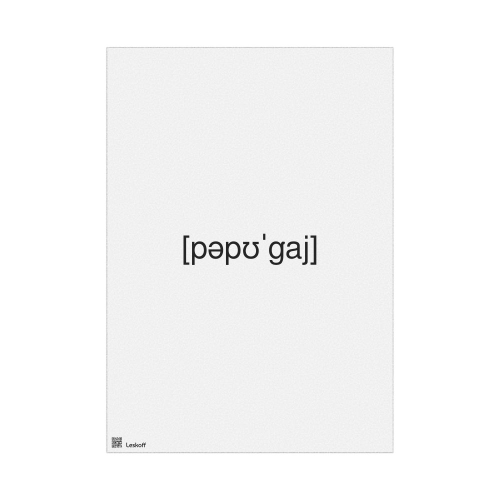 A poster featuring the phonetic transcription of попугай in the International Phonetic Alphabet (IPA).