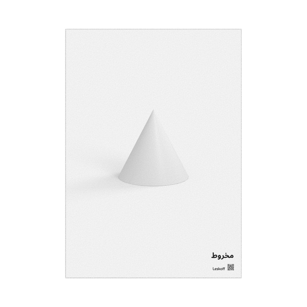 A poster featuring a cone in Arabic (مخروط).