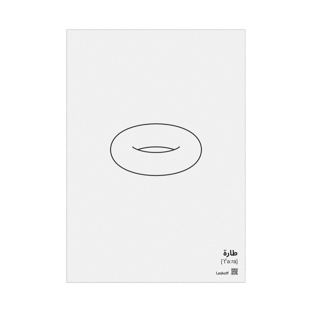 A poster featuring a torus in Arabic (طارة) with IPA phonetic transcriptions (pronunciation guides).