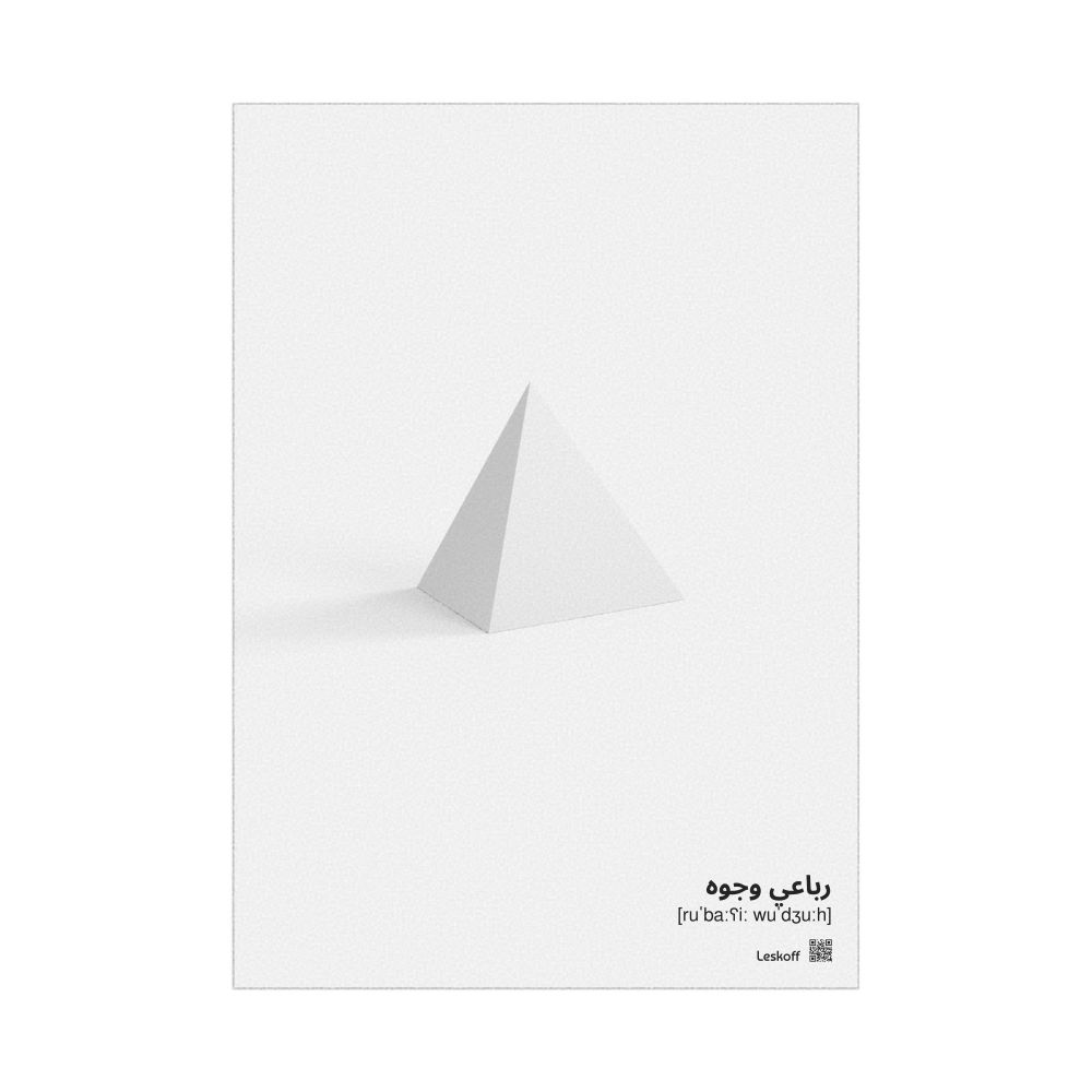 A poster featuring a tetrahedron in Arabic (رباعي وجوه) with IPA phonetic transcriptions (pronunciation guides).