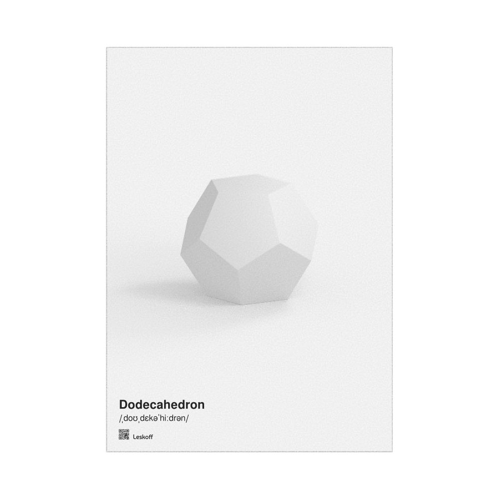 A poster featuring a dodecahedron in English with IPA phonetic transcriptions (pronunciation guides).