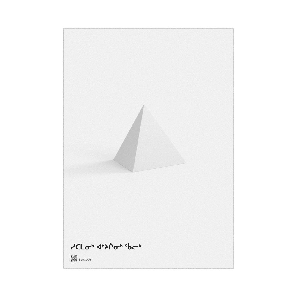 A poster featuring a tetrahedron in Inuktitut (ᓯᑕᒪᓂᒃ ᐊᔾᔨᒌᓂᒃ ᖄᓕᒃ).