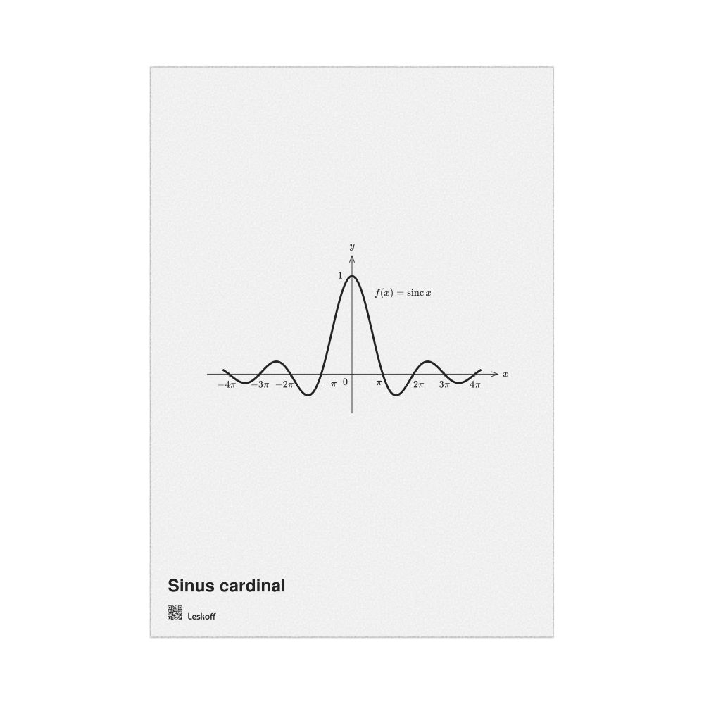 A poster featuring a plot of the sinc function in French (Sinus cardinal).