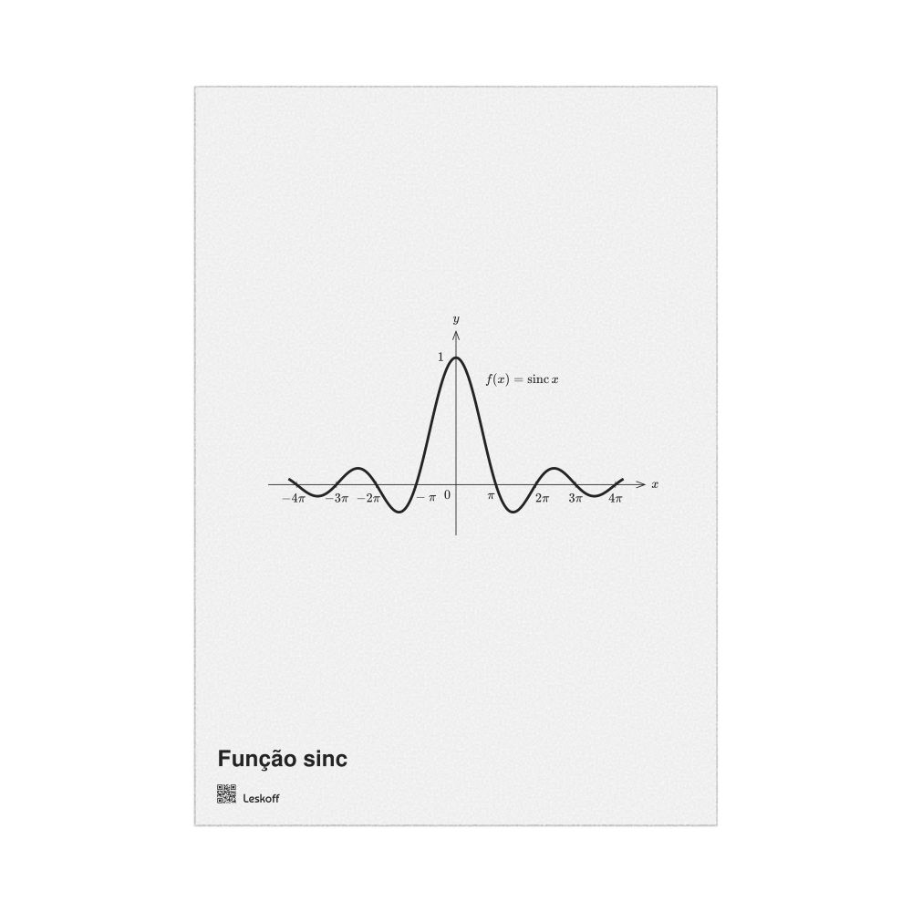 A poster featuring a plot of the sinc function in Portuguese (Função sinc).