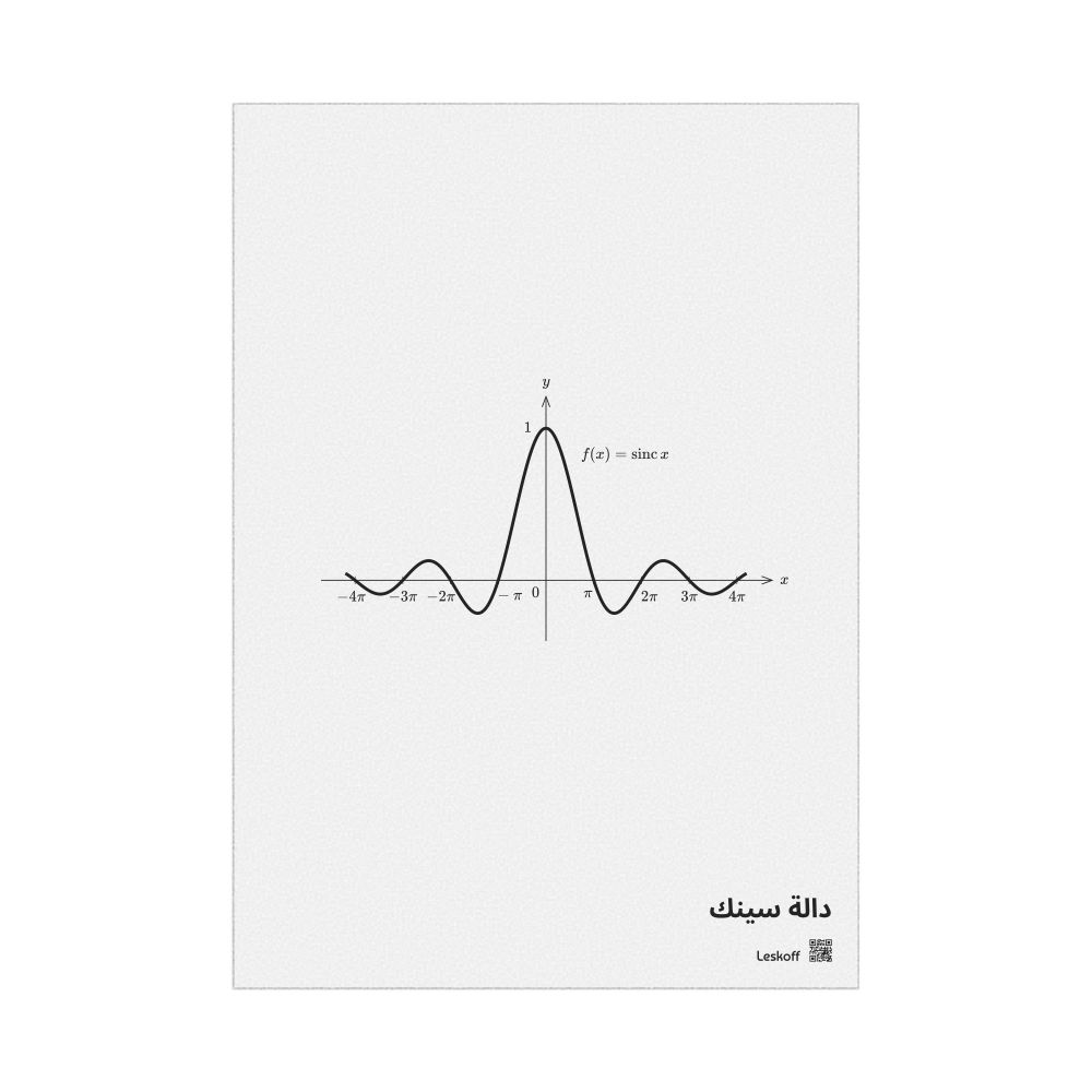 A poster featuring a plot of the sinc function in Arabic (دالة سينك).