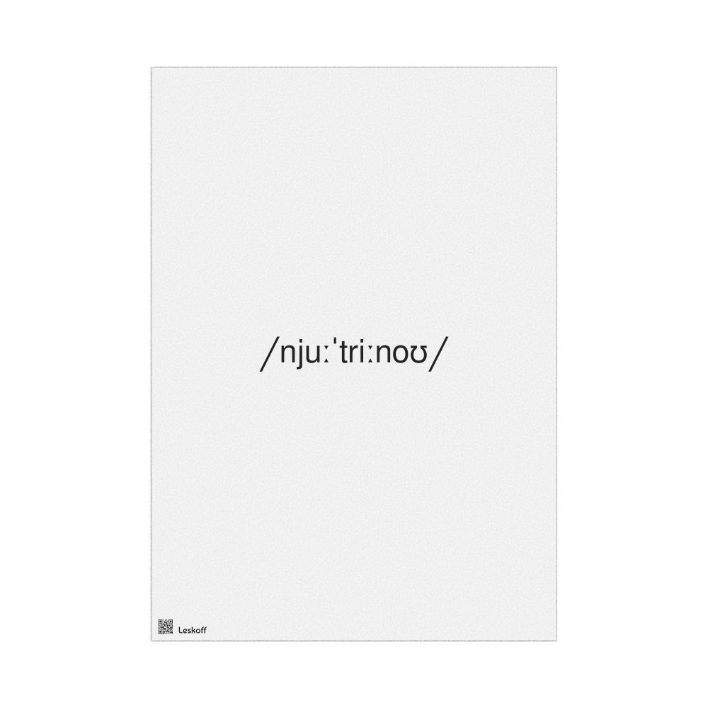 A poster featuring the phonetic transcription of neutrino in the International Phonetic Alphabet (IPA).