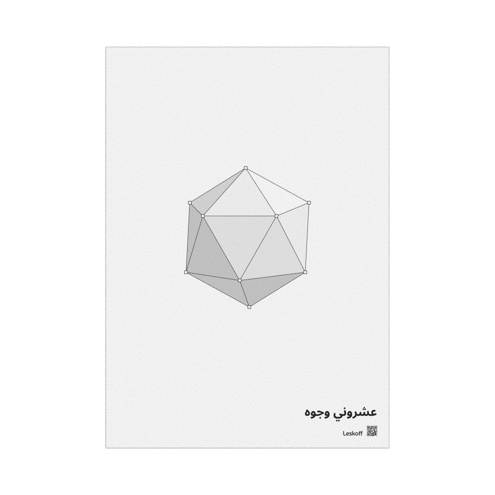 A poster featuring a icosahedron in Arabic (عشروني وجوه).