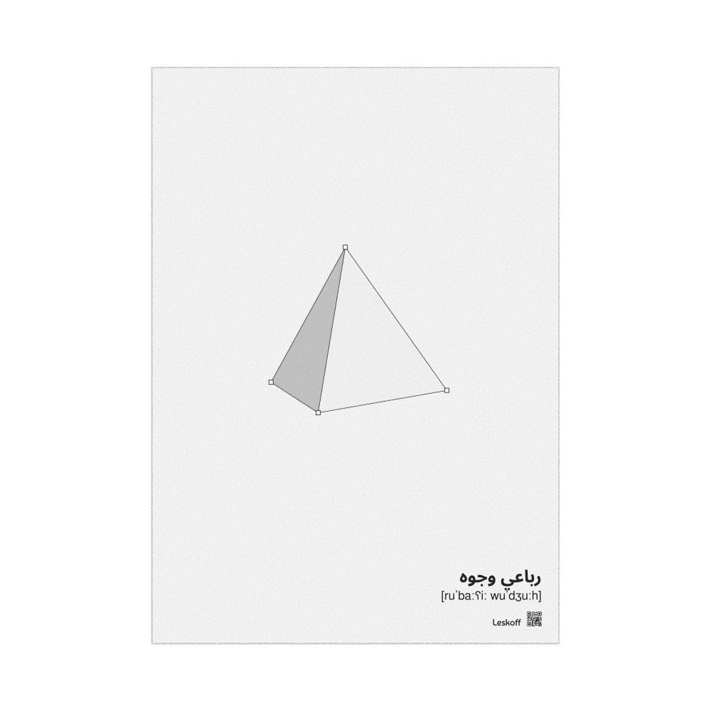 A poster featuring a tetrahedron in Arabic (رباعي وجوه) with IPA phonetic transcriptions (pronunciation guides).