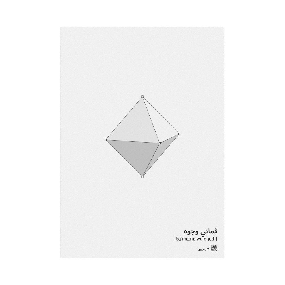 A poster featuring a octahedron in Arabic (ثماني وجوه) with IPA phonetic transcriptions (pronunciation guides).