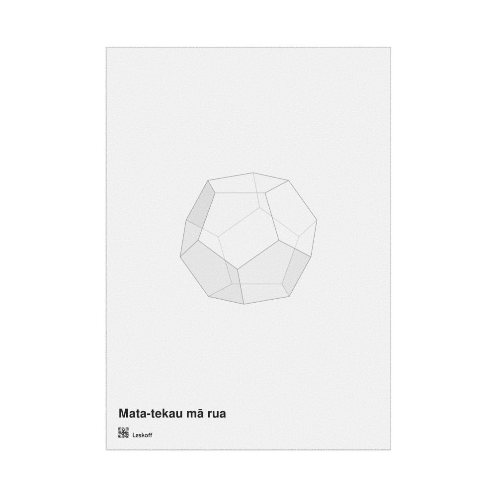 A poster featuring a dodecahedron in Māori (Mata-tekau mā rua).
