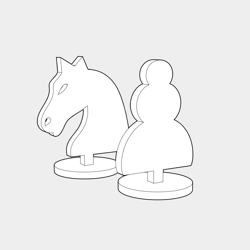 A chess set with contoured, flat-style pieces.