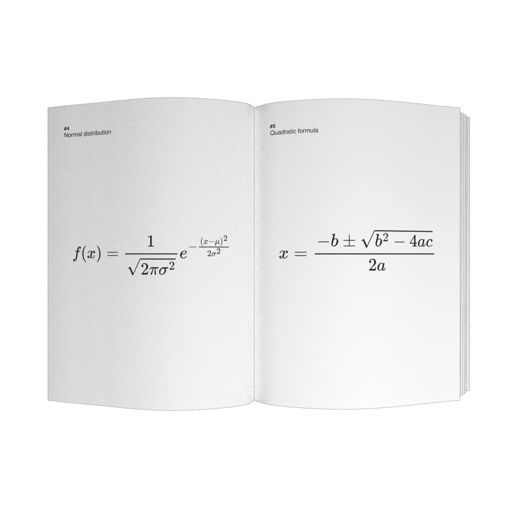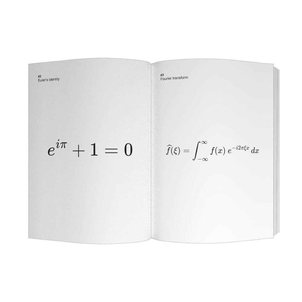 A collection of large-format formulas showcasing the beauty of mathematics and mathematical typesetting.