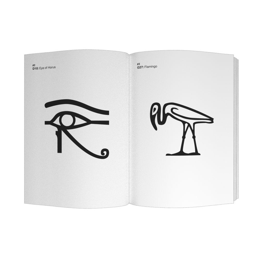 A collection of large-format Egyptian hieroglyphs that reveals the fine details of the ancient writing system.
