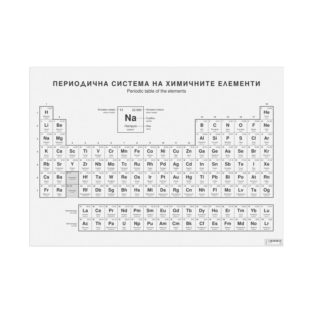 Periodic Table Chart, 33.1 x 23.4 in (84.1 x 59.4 cm, Poster / Wall Chart), 32-Column Layout, Bulgarian/English-Labeled