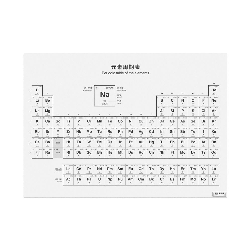 Periodic Table Chart, 33.1 x 23.4 in (84.1 x 59.4 cm, Poster / Wall Chart), 32-Column Layout, Chinese/English-Labeled