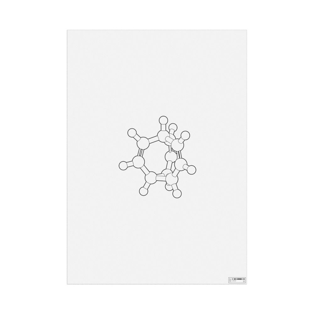 A poster featuring the ball-and-stick model (stylized) of the bullvalene molecule.