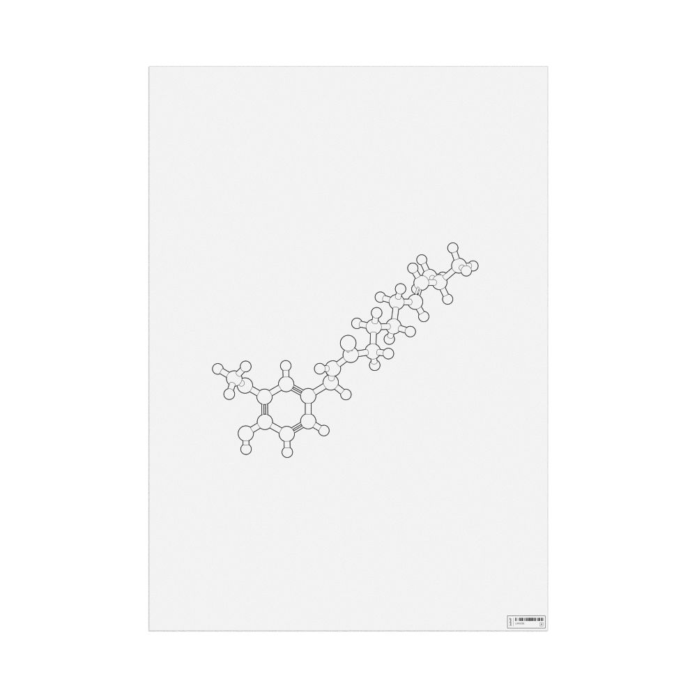 A poster featuring the ball-and-stick model (stylized) of the capsaicin molecule.