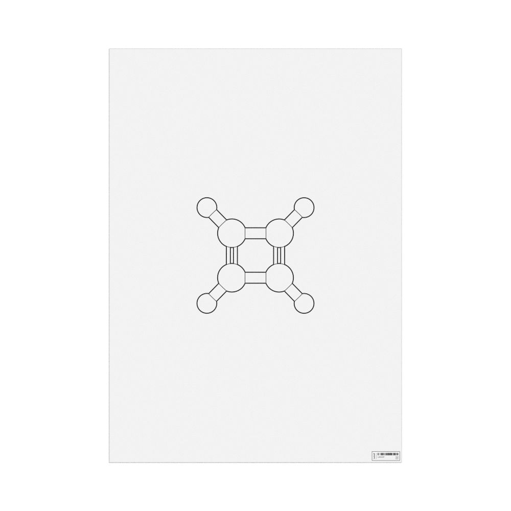 A poster featuring the ball-and-stick model (stylized) of the cyclobutadiene molecule.