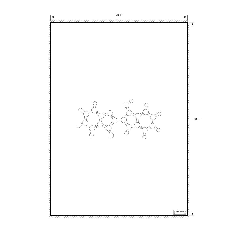 A poster featuring the ball-and-stick model (stylized) of the indigo molecule.
