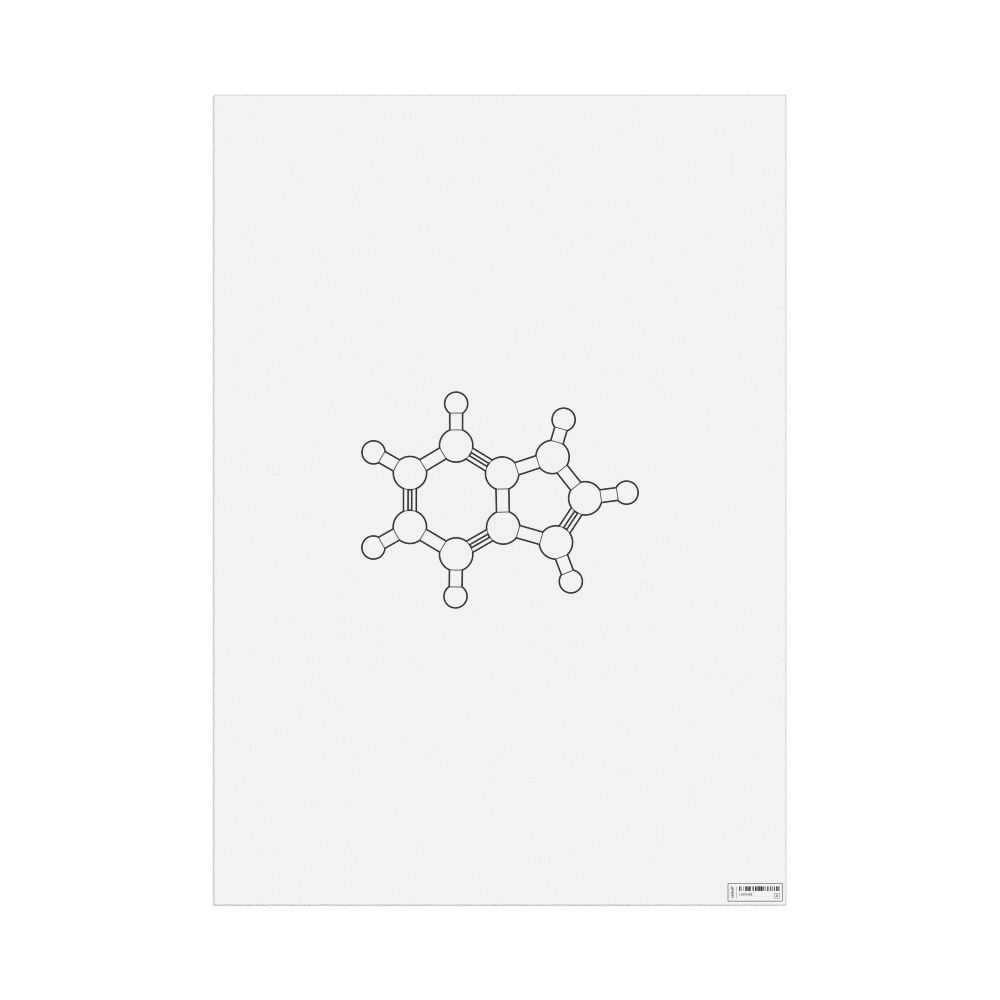 A poster featuring the ball-and-stick model (stylized) of the indole molecule.