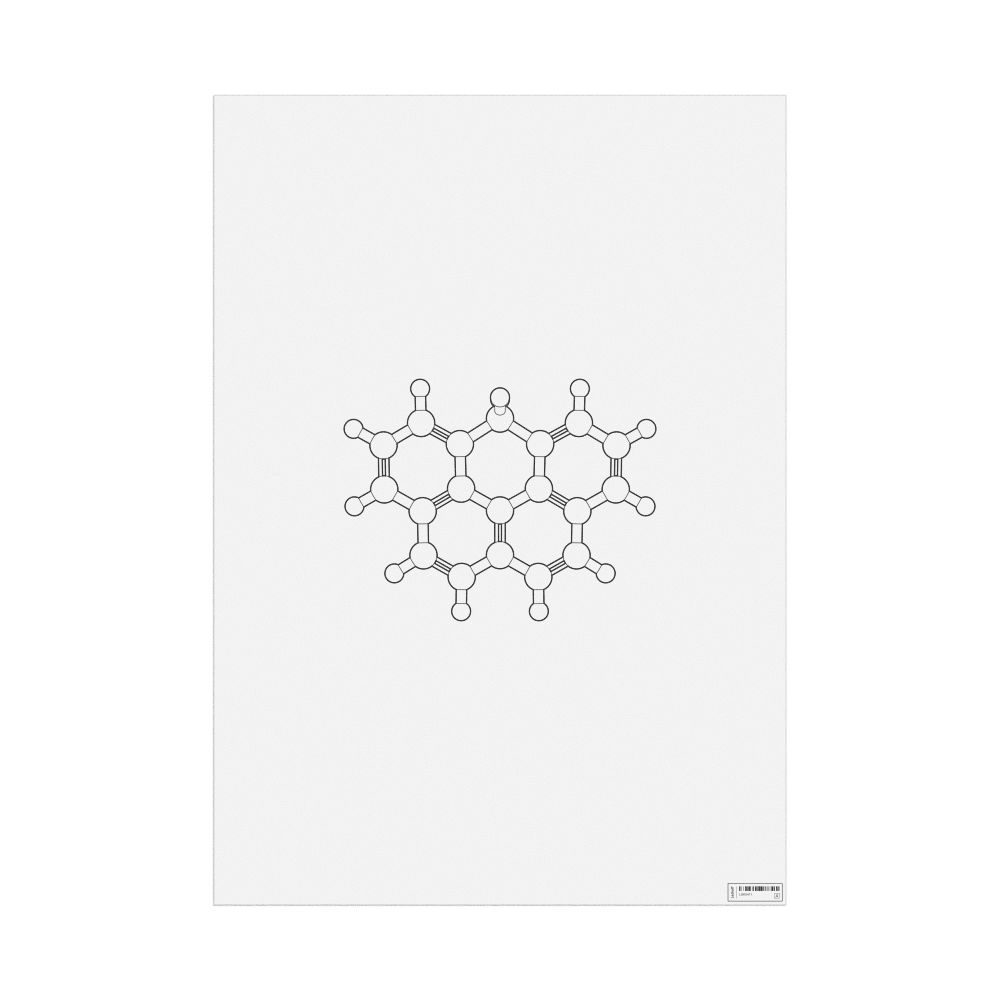 A poster featuring the ball-and-stick model (stylized) of the olympicene molecule.
