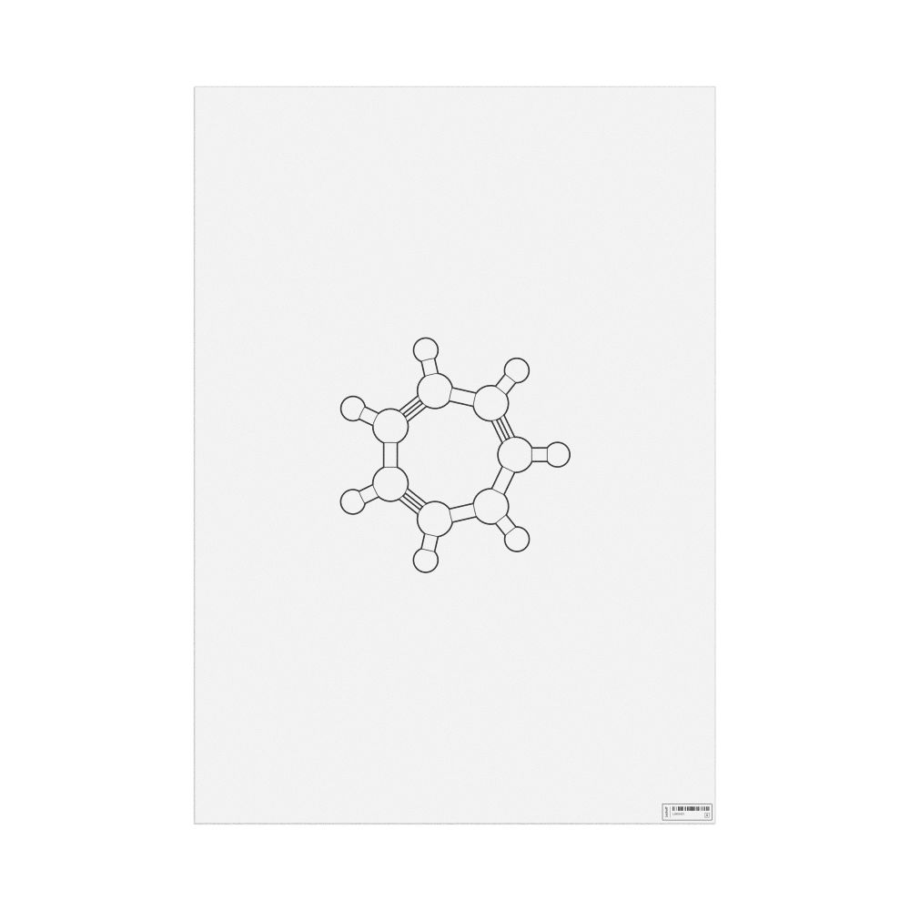 A poster featuring the ball-and-stick model (stylized) of the tropylium ion.