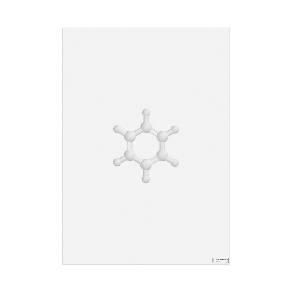 A poster featuring the ball-and-stick model of the benzene molecule.