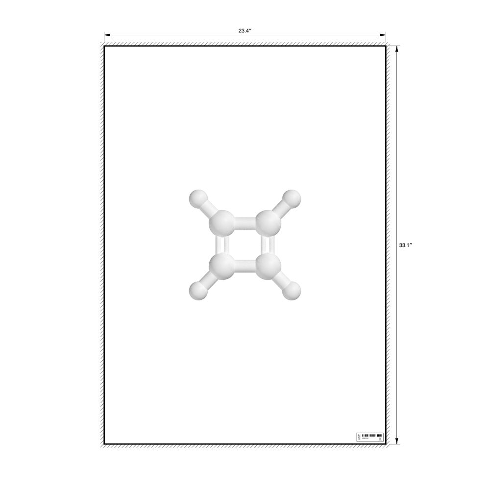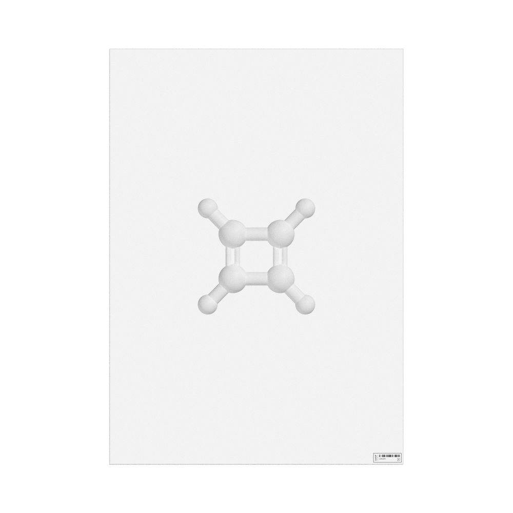 A poster featuring the ball-and-stick model of the cyclobutadiene molecule.